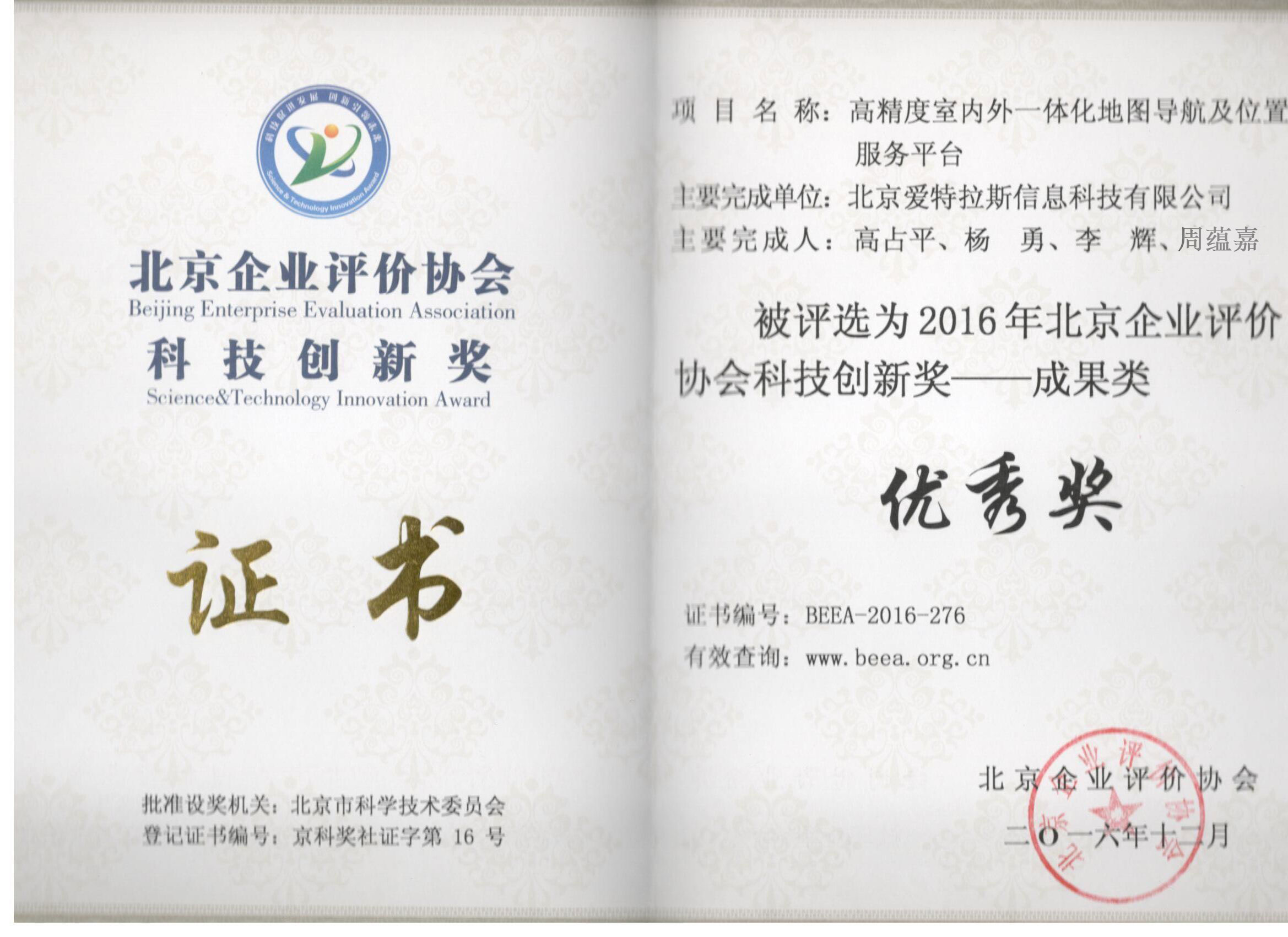 公司喜獲2016年度北京企業(yè)評價(jià) 協(xié)會(huì )科技創(chuàng )新獎