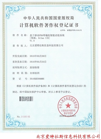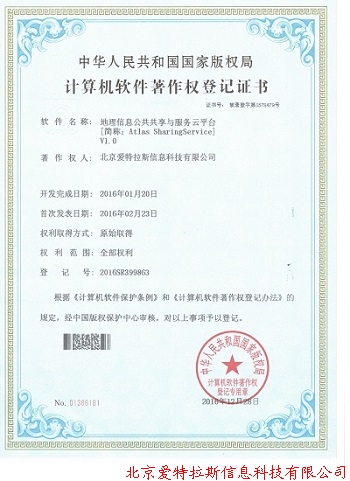公司又榮獲5項計算機軟件著(zhù)作權:基于移動(dòng)PAD終端的智能巡檢系統、外業(yè)像控刺點(diǎn)軟件、地理信息公共共享與服務(wù)云平臺、基于IPAD的外業(yè)調繪核查軟件、國際經(jīng)貿合作網(wǎng)絡(luò )信息服務(wù)平臺等5項計算機軟件著(zhù)作權。