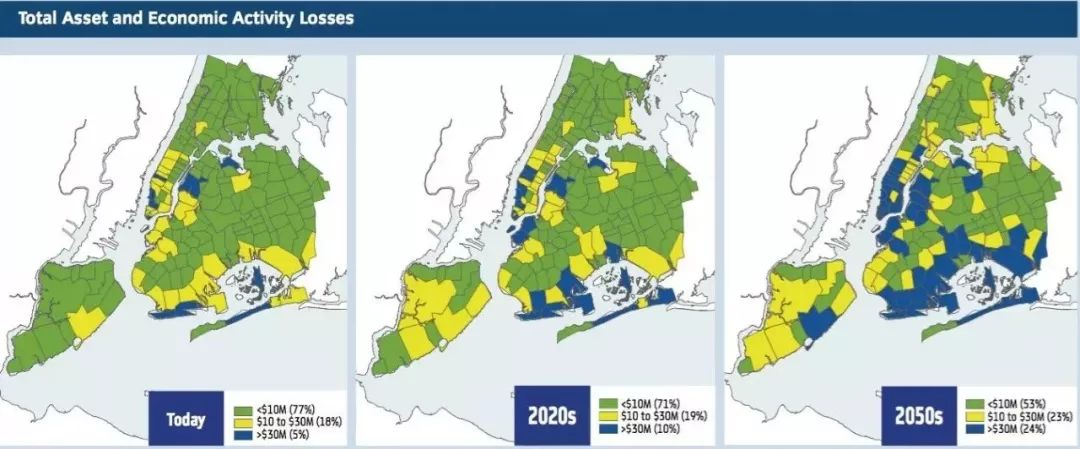 其中,以洪災為重點(diǎn),利用預期損失模型和成本效益分析法,對紐約2020年和2050年的氣候風(fēng)險進(jìn)行預測,明確可能的影響范圍及其潛在損失,并對不同規劃措施的損益情況進(jìn)行評估,為政府科學(xué)決策提供了有力的技術(shù)支撐。