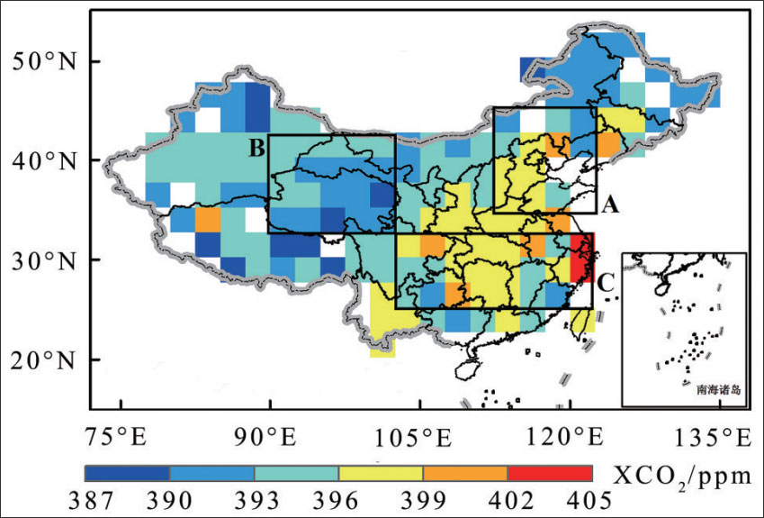 GOSAT 短波紅外 CO2二級產(chǎn)品是GOSAT單點(diǎn)觀(guān)測的大氣整層的 XCO2,它由 GOSAT 獲取的3個(gè)短波紅外吸收光譜采用最優(yōu)估計的方法反演得到。GOSAT短波紅外波譜經(jīng)云濾除及其他預處理,獲得可用于反演的無(wú)云吸收光譜,在獲取先驗知識基礎上,采用最優(yōu)估計方法反演大氣 XCO2,最后經(jīng)質(zhì)量濾除,得到整層大氣的XCO2產(chǎn)品。