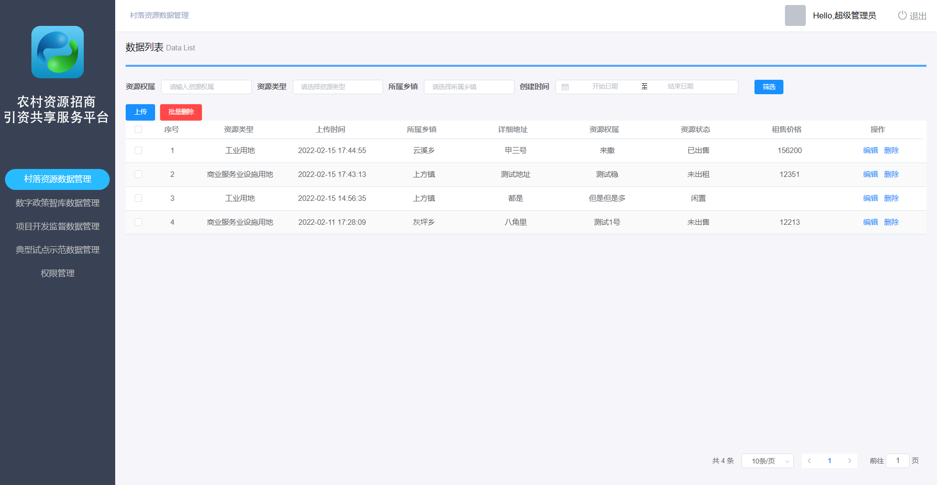 本系統總體目標是建立一個(gè)可視化的農村資源招商引資共享服務(wù)平臺,本系統建設以“村落資源標準地”為基礎,以地理信息技術(shù)為依托,繪制招商地圖,同時(shí)建成企業(yè)數據庫,根據不同村落情況、資源情況進(jìn)行招商信息進(jìn)行精準推送,高效推動(dòng)招商效率,加速產(chǎn)業(yè)落地。系統建設以村落開(kāi)發(fā)經(jīng)營(yíng)為目標,以村落開(kāi)發(fā)標準地為切入口,借力“生態(tài)大腦”系統,搭建村落資源開(kāi)發(fā)的精準招商導航器,助推村莊生態(tài)資源價(jià)值提升,資源轉化,產(chǎn)業(yè)發(fā)展,進(jìn)而實(shí)現強村富民,夯實(shí)共同富裕最小單元。